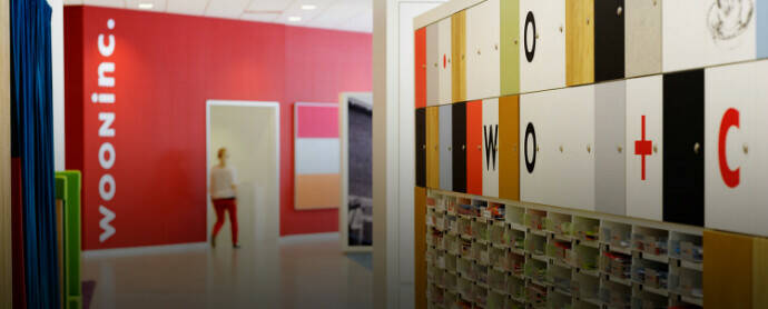 De E staat voor Energiegevende werkplekken. Kunnen medewerkers een werkplek kiezen die op dat moment het beste bij hun behoefte past? Zijn er ontmoetingsplaatsen? Is de werkomgeving inspirerend en bevorderlijk voor de vitaliteit? Laat de omgeving zien waar Wooninc. voor staat?